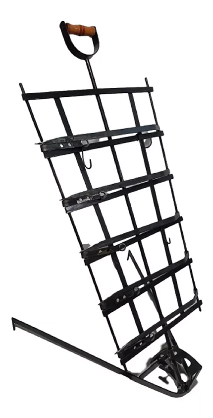Asador Malambo grande. Con base propia. Gira 360° y se inclina en 3 posiciones. Ganchos incluidos.