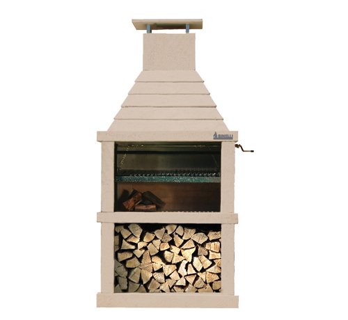 Parrilla prefabricada de hormigón con partes expuestas a temperaturas de fuego hechas de material refractario. Equipadas con herrajes de parrilla enlozados móviles en altura y removibles por partes. Grasera enlozada extraíble.