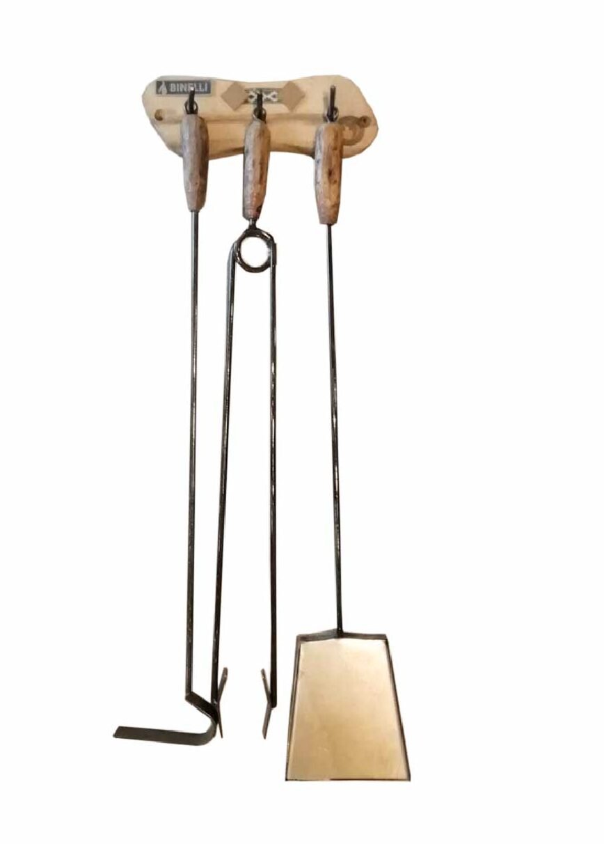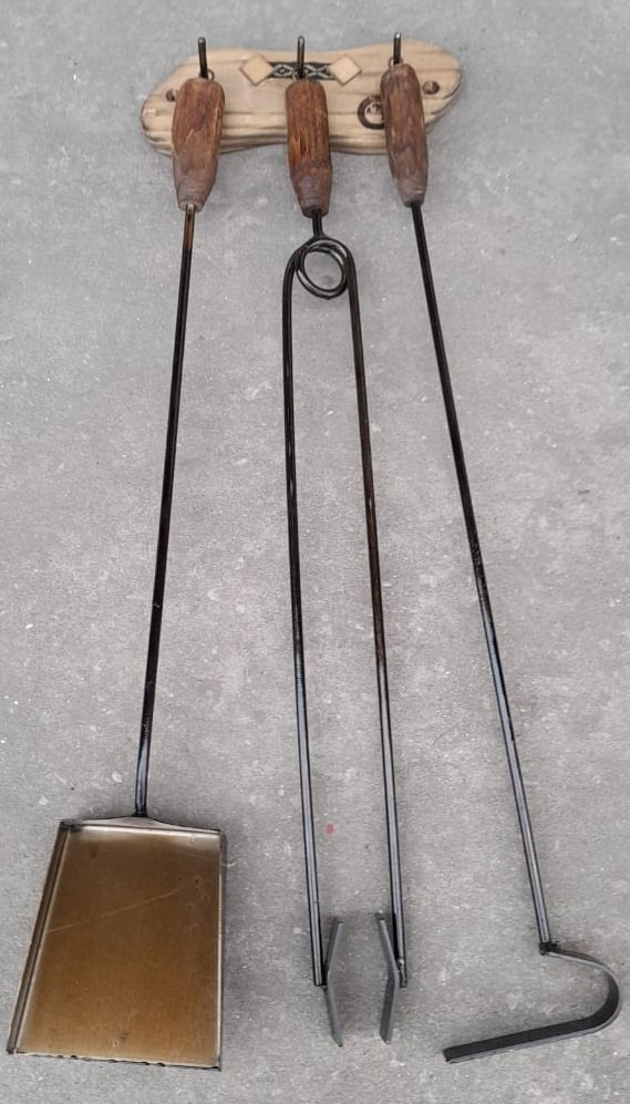 Juego parrillero artesanal 3 piezas y 1 soporte. Incluye pala, atizador y pinza.