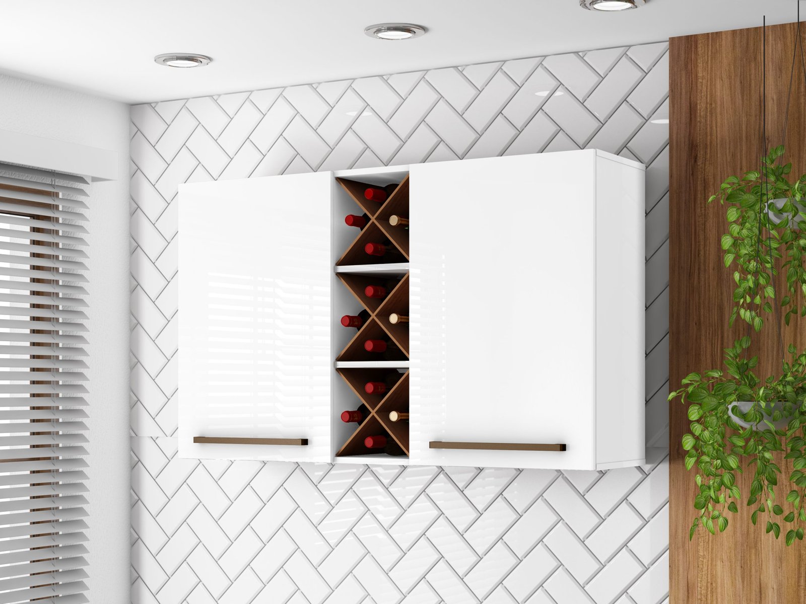 Mueble aéreo con botellero Blanco Natura/Cinamomo